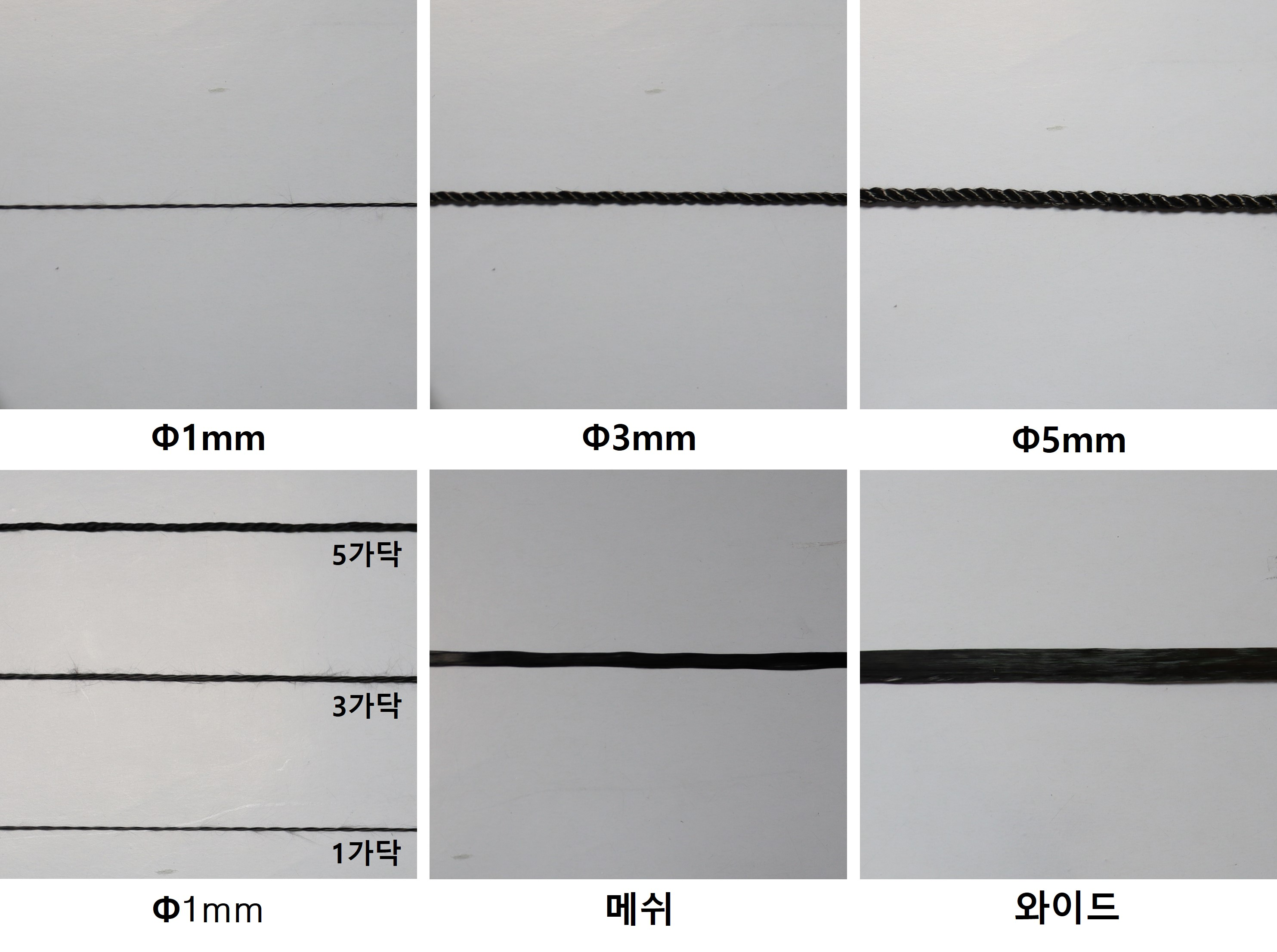 Φ 5 mm 탄소섬유는 각각 1가닥, 3가닥, 5가닥의 세 가지 조건으로 나누어 측정하였다. (Fig. 1) 저항 측정은 2-probe 방식으로 실시하고 전극 간격은 1 m로 고정하였다.