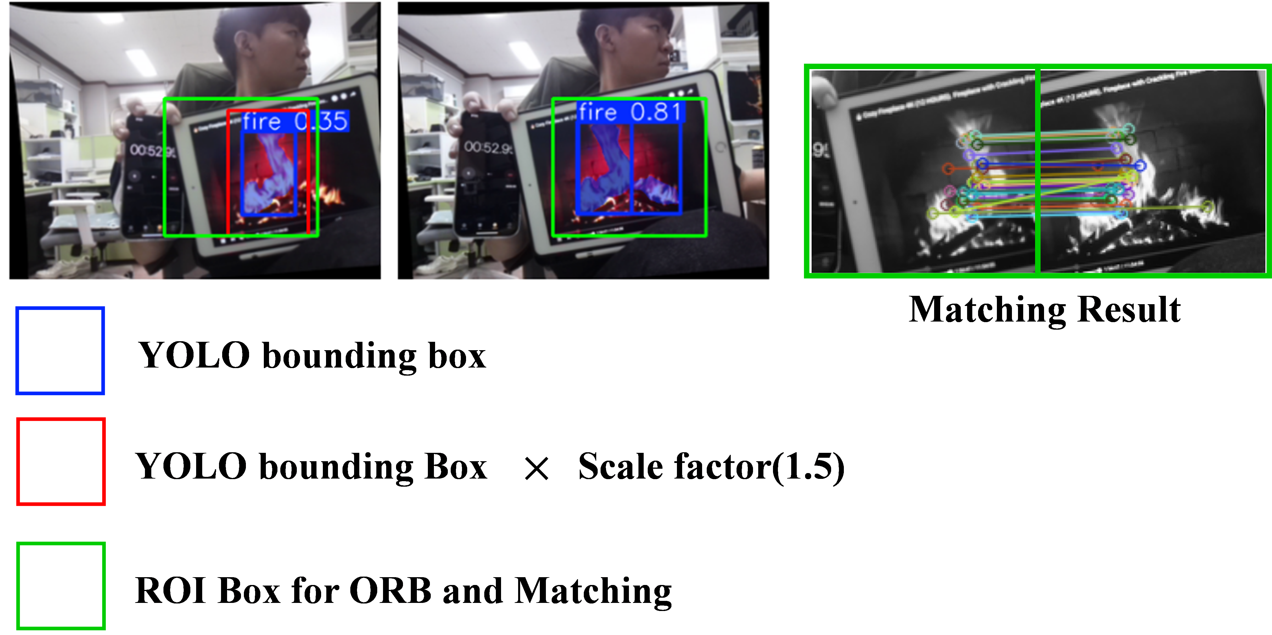 상자의 합집합을 최종 관심 영역으로 정의하였다. 이를 통해 구한 관심 영역에서 ORB 알고리즘을 적용하여 각각의 특징점과 특징점의 디스크립터를 추출한