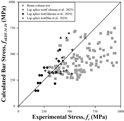 1.01로 상대적으로 낮게 나타났다. 이는 현행 설계식을 그대로 적용할 경우 갈고리 철근 이음의 성능을 과대평가할 가능성을 뒷받침한다.