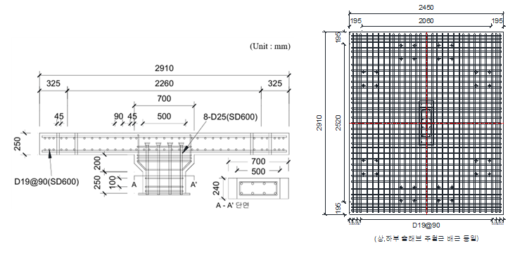 이르는 차이를 보였지만, 설계 기준상 전단 강도 상한식이 적용되지 않았다. 상한식은 슬래브 압축파괴 방지를 주목적으로 제안하지만, 실험 결과에 따르면