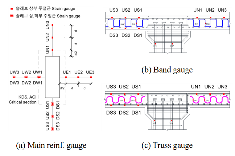 이는 하중의 영향이 국부적으로 집중되는 특성을 반영한다. 특히, KDS와 ACI에서 가정하는 d/2 위치에서 변형률이 집중되었고, 유럽 설계기준 EC2에서
