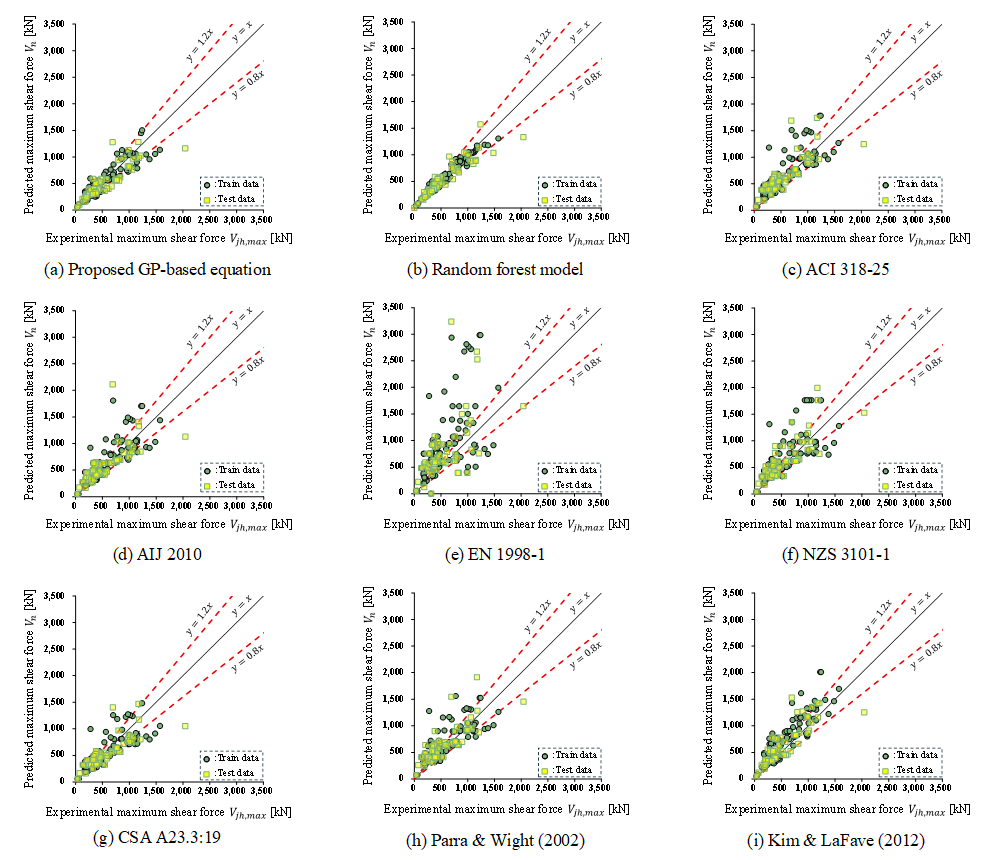 달리 변수 선택의 객관성과 수식의 해석 가능성을 동시에 확보할 수 있다. 또한, 도출된 산정식을 현행 구조기준 및 기존 모델들과 비교⋅분석하여 그