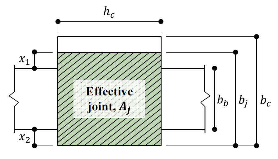 와 같이 계산될 수 있다. 여기서, $A_{j}$는 접합부의 유효 단면적을 의미한다. 본 연구에서는 ACI 318-25에서 제시하는 접합부의 유효