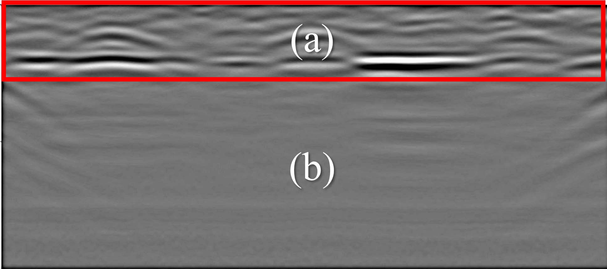깊이, 동일한 위치에 보강근이 존재하기에 공간평균화를 통해 잡음을 줄이고, 보강근으로부터의 반사파를 보다 증폭시킬 수 있다. 실제 구조물 진단 적용에