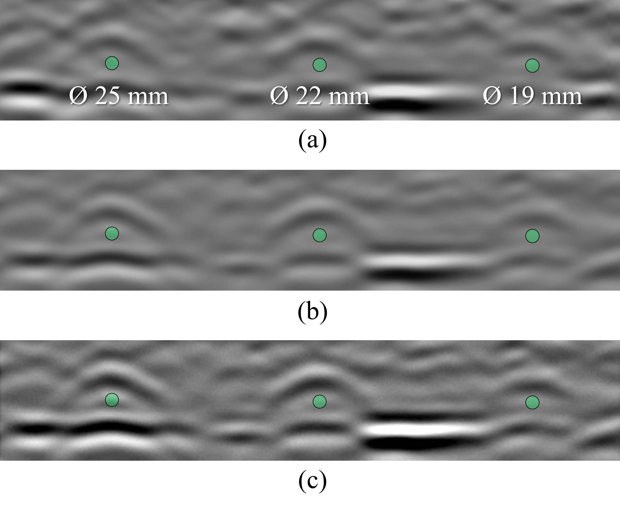 제안한다. 실험적 검증에는 실제 시공용 GFRP 보강근을 사용하여 시편을 제작하였다. GPR 장비로 수집한 B-Scan 이미지의 처리 작업을 통해