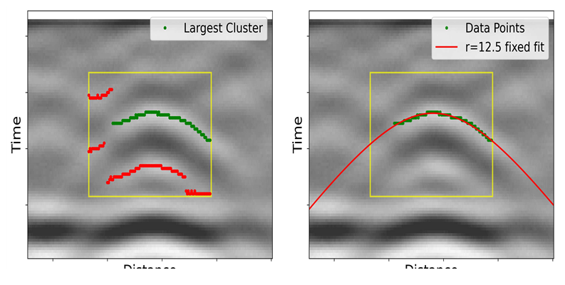 Fig. 15. Hyperbola fitting results with spatial averaging ($r$=12.5 mm)