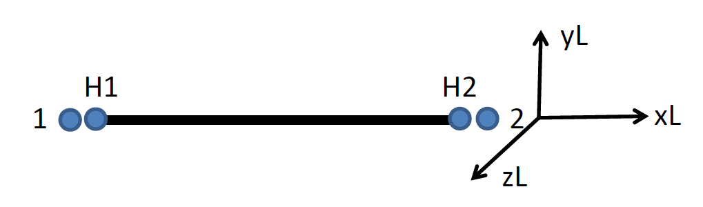 된다. 아래 그림에서 Beam 힌지는 절점 1 및 절점 2사이의 숨은 절점 H1과 H2사이에 존재하며, 힌지요소의 길이는 Zero이다. Beam힌지의