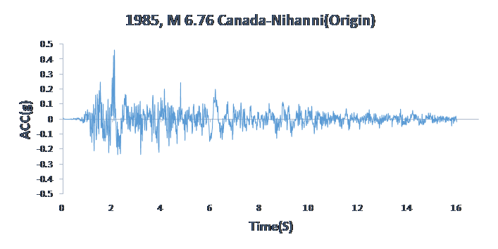 내진해석을 위해 우리나라와 같은 판 내부에서 발생한 실지진파를 이용하였다. 지진파는 캐나다 Nahanni 국립공원 지역에서 1985년 발생한 지진파로