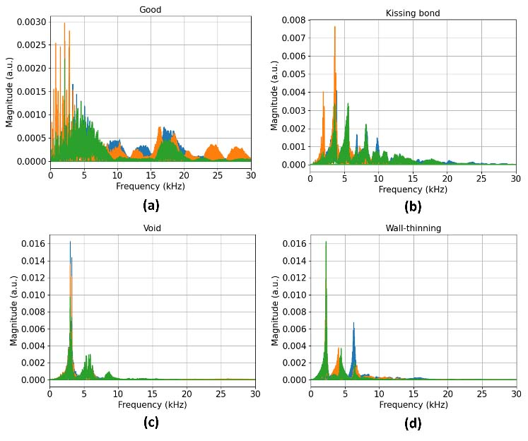 차이를 분석함으로써 결함 탐지 뿐 아니라 공극, 접촉 불량, 감육 손상 등 다양한 결함 유형을 구분 가능성을 확인하였으며, 머신러닝 기반 자동화를