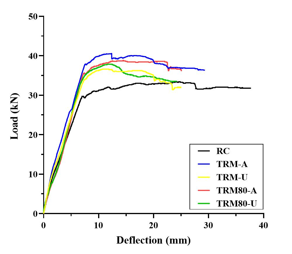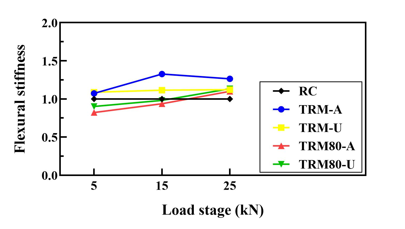 무손상 TRM 보강보 대비 감소하는 것으로 보고했으며, 이는 사전 하중에 의해 균열로 단면의 강성이 감소하여 휨 보강 성능이 감소하는 것으로 확인했다.