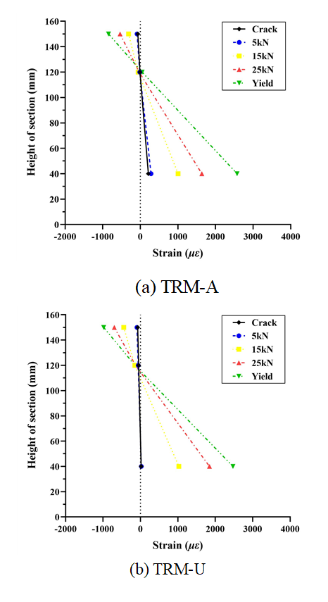 따라서 본 연구의 실험 결과와 선행연구를 종합하여 TRM 보강보의 항복단계를 보강 한계로 정의했다.
