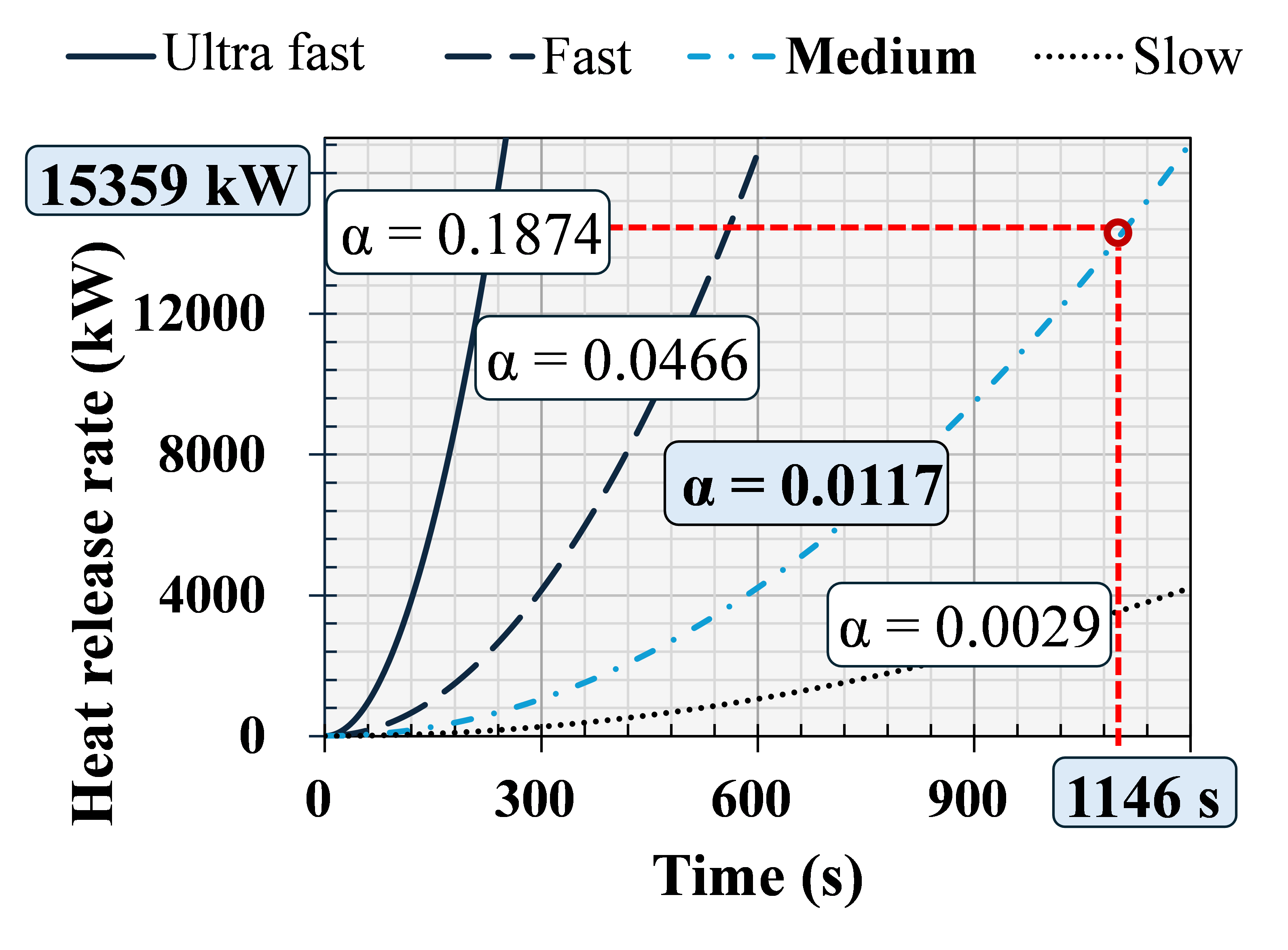Kim(2013)은 침실 공간을 대상으로 실규모 화재 실험을 수행하여 열방출률 데이터를 제시하였다. Kweon(2016)은 실규모 화재 실험 결과를 토대로 표준 시간-온도 곡선과 실제 화재 시간-온도 곡선을 비교⋅분석하였으며, 이를 통해 실 화재 성장곡선의 적용 가능성을