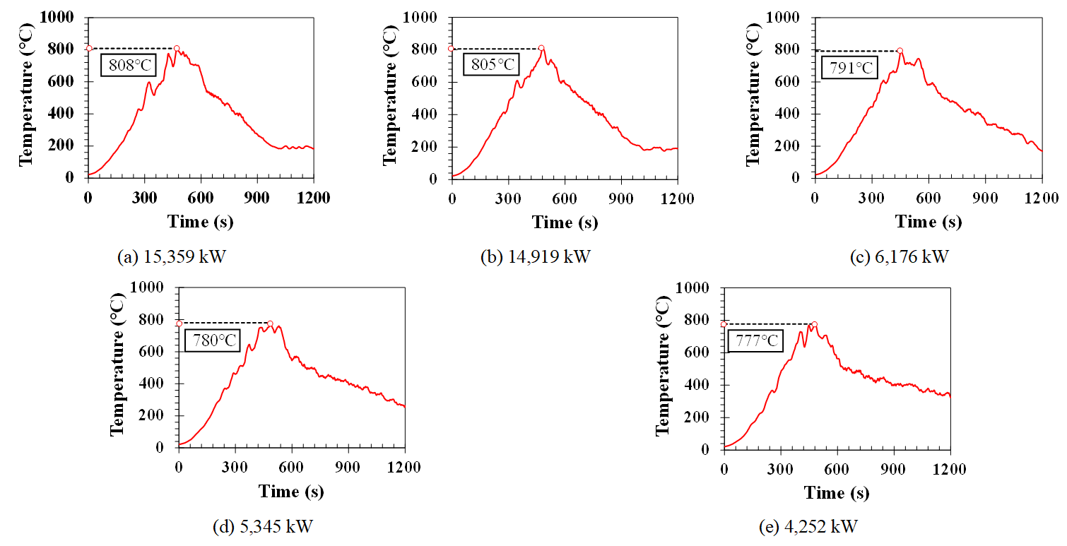 4. 다만, 본 연구에서 제안된 시간-온도 곡선은 초기 화재 성장 및 최성기 직후까지의 짧은 시간(약 20분 내외)을 기반으로 도출되었으므로,