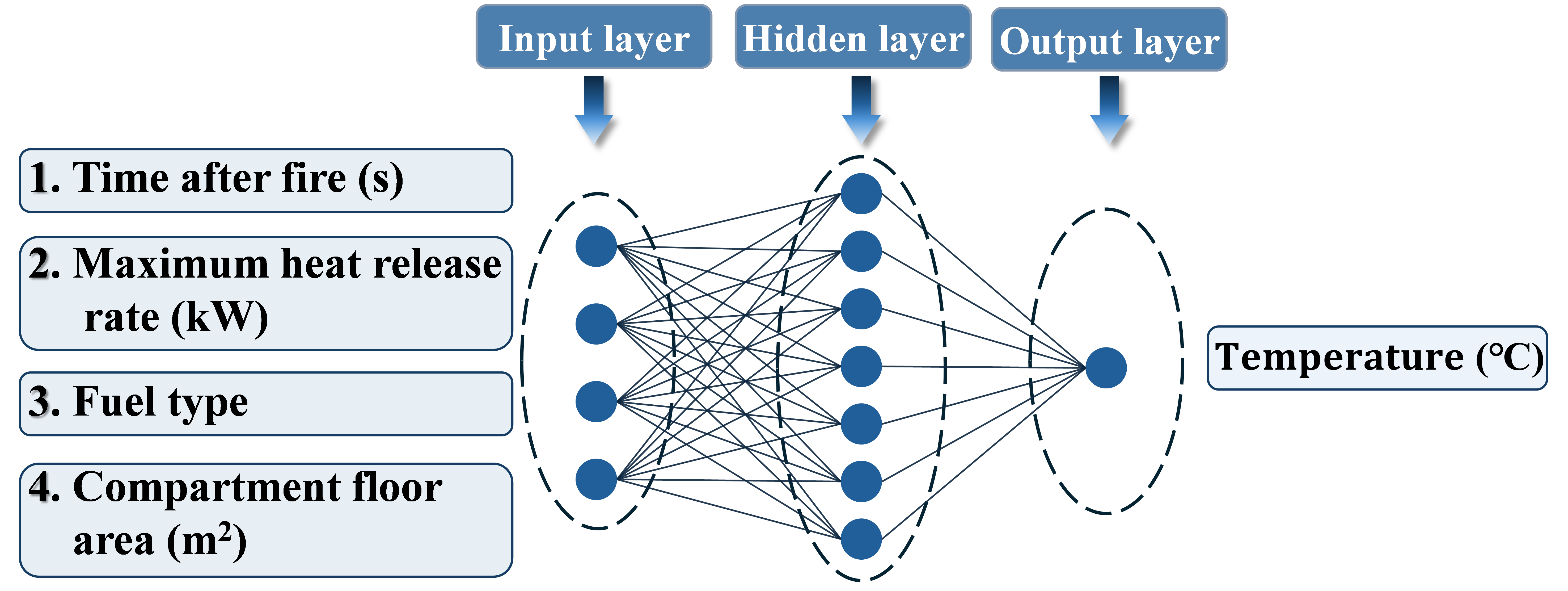 결과를 바탕으로 천장부 온도 변화에 대한 데이터베이스를 구축하였다. 구축된 데이터를 활용하여 인공신경망(Artificial Neural Network,