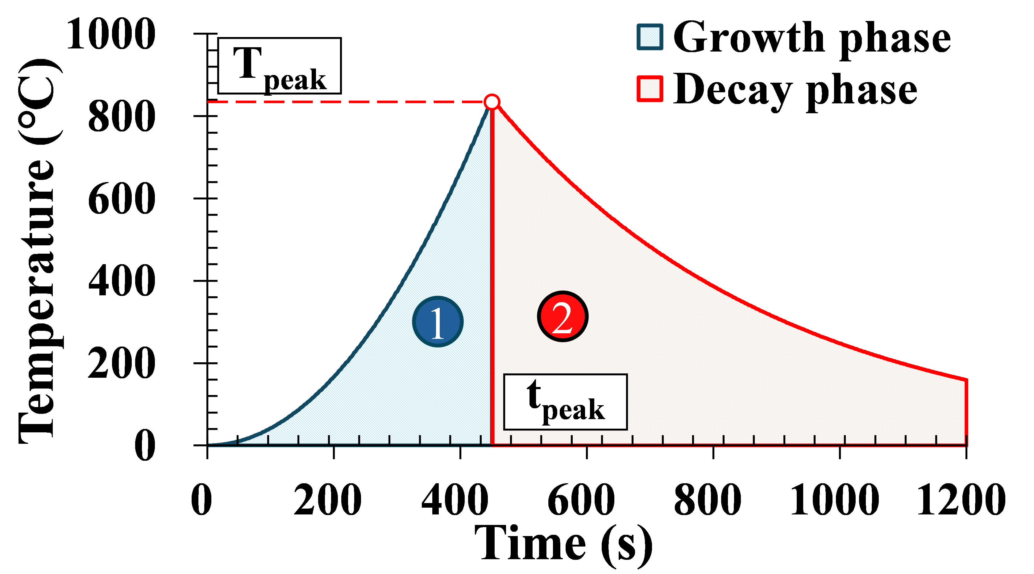수행되고 있다(Buchanan and Abu, 2002; Santarpia et al., 2019). 해당 곡선은 시간에 따른 온도 상승을 단순화하여 가정한 것이며, 화재 발생 후 시간을 주요 변수로 한다(Buchanan and Abu, 2002). 그러나 실제 건축물에서는 구획의 용도, 가연물의 종류 및 배치 조건 등에 따라 온도 분포가 다양하게 나타난다. 따라서, 기존의 화재 시간-온도