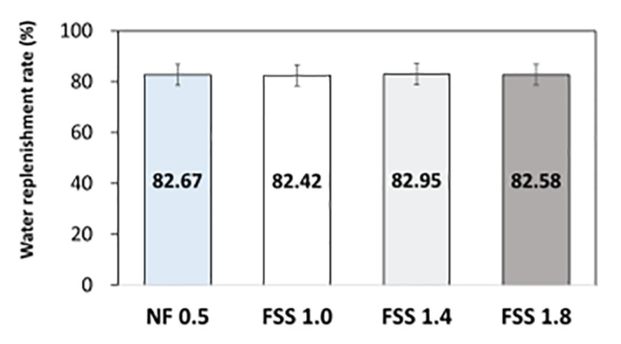 ๊ฐ๊ฐ 7.7 ยฑ 0.7 MPa, 10.2 ยฑ 0.5 MPa๋ก ์ธก์ ๋์๋ค. F ํจ๋์ด ์ฆ๊ฐ๋ FSS1.4์ FSS1.8์ ๊ฒฝ์ฐ, ์ฌ๋ น 7์ผ์์ ๊ฐ๊ฐ