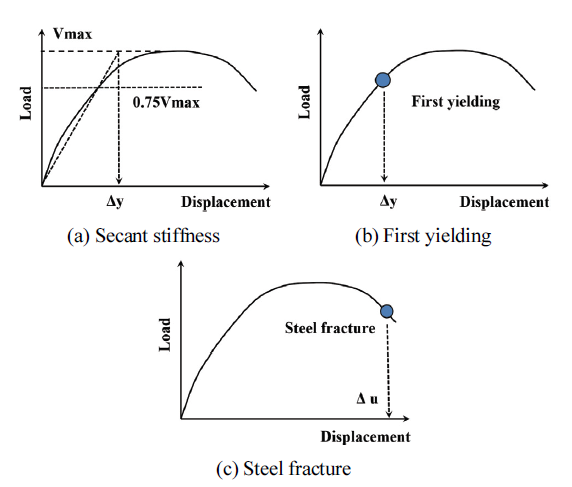 횡방향 하중이 철근콘크리트 교각에 작용하는 경우, 탄성한계를 초과하여 비탄성 영역에 도달하면 비선형 거동을 보이며 부재 손상, 보수 가능성을 나타내는