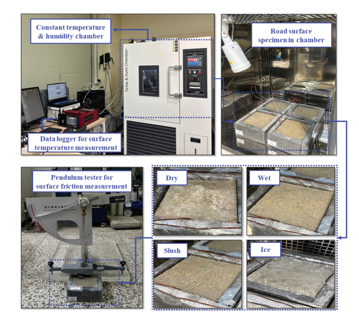 형성된 상태로, 일정량의 증류수를 분사한 후 –5℃ 이하에서 1시간 이상 유지하여 완전한 결빙층을 만들었다. 각 상태는 포면 온도와 상태 변화를 모니터링하여
