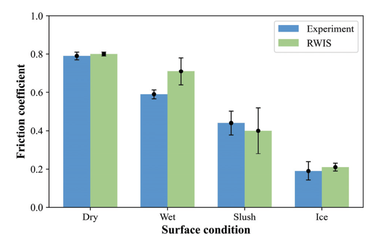 각 표면 상태별로 동일 조건의 시편 25개를 대상으로 반복 측정하여 건조, 습윤, 슬러시, 결빙의 4가지 표면 상태에 대해 각 25개씩, 총 100개의