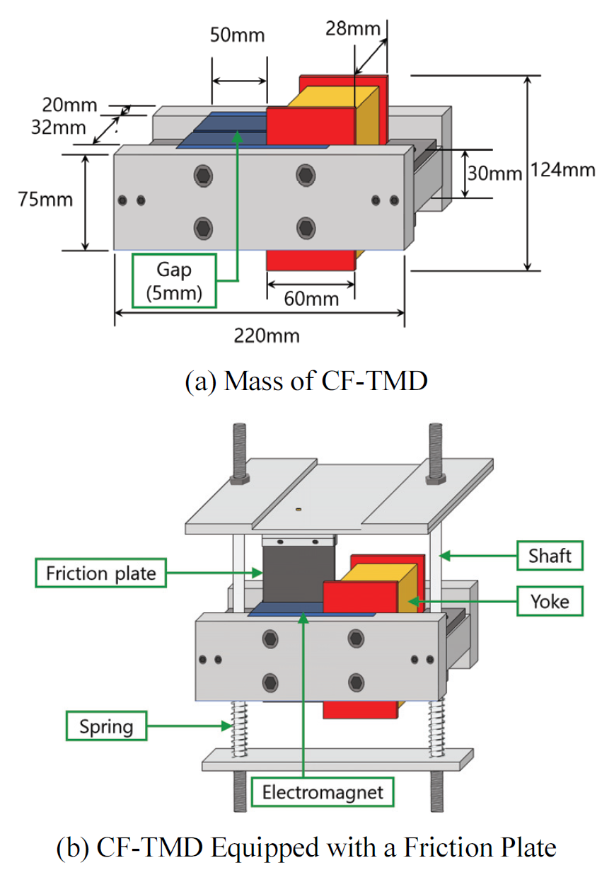 본 연구에서는 이러한 Bang-Bang 제어의 장점을 활용하여, Jeon et al.(2022)이 개발한 ETMD(Electromagnetic Tuned Mass Damper)를 기반으로 한 CF-TMD(Controlled Friction-Tuned