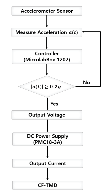 가속도 진폭이 일정 크기 이상으로 측정될 경우 CF-TMD에 인가전류를 공급하여 제어력을 발생시키는 방식으로 설계하였다. 이러한 비선형 스위칭 기반
