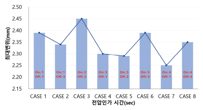 PMC18-3A를 통해 CF-TMD에 0.93 A의 전류를 4초 동안 인가하도록 설정하였다. 이후 가속도 응답이 기준값 이하로 감소하면 전류 인가를