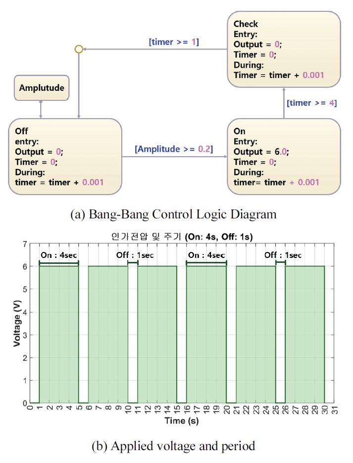 중단하는 방식인 Bang-Bang 피드백 제어 알고리즘을 적용하였다.