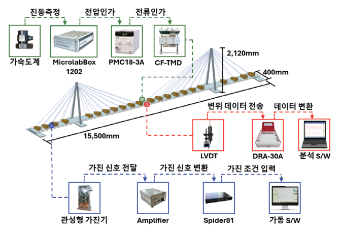 TMD의 제어 성능이 저하되는 구간을 포함한 다양한 외력 조건 하에서의 실시간 진동 제어 성능을 실험적으로 분석하고, 향후 교량 및 대형 구조물에서