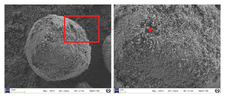 나노실리카를 분체 상태에서 99.5(실리카퓸):0.5(나노실리카)의 질량 비율로 혼합하여 제조한 것을 사용하였다. Fig. 1은 SMF의 SEM분석 이미지를 나타내었으며, 실리카퓸 입자에 나노 실리카가 고르게 분포되어 붙어 있는 것을 확인할 수 있다. SMF는 콘크리트,