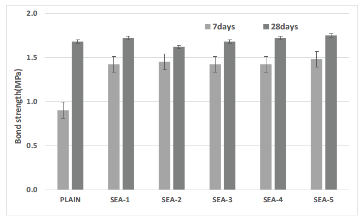 부착강도 1 MPa)를 상회하는 역학적 성능을 통해, 습윤 환경에 대한 재현성이 매우 우수한 것을 알 수 있다.
