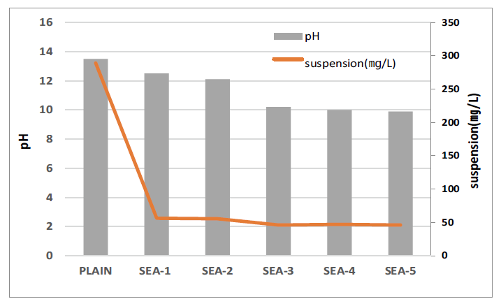 수중분리도 기준인 pH 12 이하 및 현탁물질량 50 ㎎/L의 기준을 만족하는 것으로 나타났다.