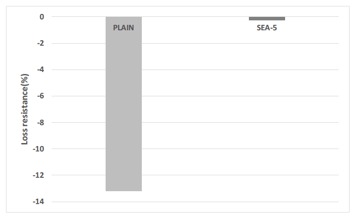 유실저항성능 시험은 PLAIN과 역학적 성능이 우수한 SEA-5를 선정하여 진행하였으며, 시험결과는 Fig. 12에 나타내었다.