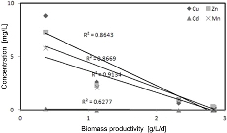 3.2. Biomass productivity and heavy metal removal using microalgae