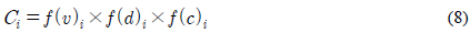 ๋ฉด์ Ai)์ ๋ณตํฉ์์์ฒ ์ ํฉ๋ ์ง์(Ci )๋ฅผ ๊ณฑํ์ฌ ๊ณ์ฐ๋๊ณ ์ด์ฉ๋๋ ์์์ ๋ค์ ์ (9)์ ๊ฐ๋ค.