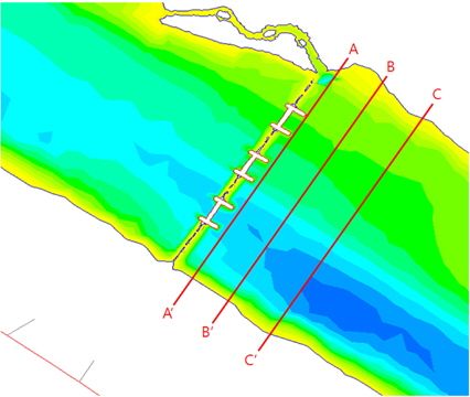 ์ ์ต์ ํ ์ธ๊ณตํ๋์ ์ด๋๋ก ์ ์ ๋์๋ค(MLTM, 2009a). Fig. 3์ ์ธ๊ณตํ๋์ ์ด๋์ ํ๋ฉด๋๋ฅผ ๋ํ๋ธ ๊ฒ์ด๋ฉฐ Fig. 4๋ ์ธ๊ณตํ๋์ ์ด๋์ ์ฐ์ธก์ ์์นํ ์ ์ธ์๋ก์ ํ์ฅ์ฌ์ง์ด๋ค. Table 1์ ์ธ๊ณตํ๋์ ์ด๋์ ์ ์ธ์๋ก์ ์ ์์ ๋ํ๋ธ ๊ฒ์ผ๋ก ์ธ๊ณตํ๋์ ์ด๋๋ ์ด ๊ธธ์ด 365.2 m, ๋์ด 9.0 m, ๊ฒฝ์ฌ 1/600์ด๋ฉฐ ์ ์ธ์๋ก๋ ์ด