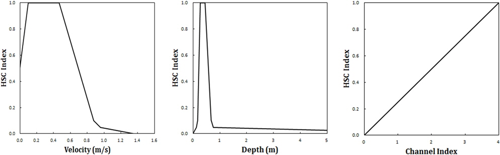 ์ฌ๊ธฐ์ vi๋ ์ ์ ์ ํฉ๋ ์ง์, di๋ ์์ฌ ์ ํฉ๋ ์ง์, ci๋ ํ์์ง์ ์ ํฉ๋ ์ง์๋ฅผ ๋ํ๋ธ ๊ฒ์ด๋ค. River2D ๋ชจํ์ ํ๋์ ์์ฌ๊ณผ ๋ ๊ฐ์ ์ ์์ ๊ณ์ฐํจ์ผ๋ก์จ ์
