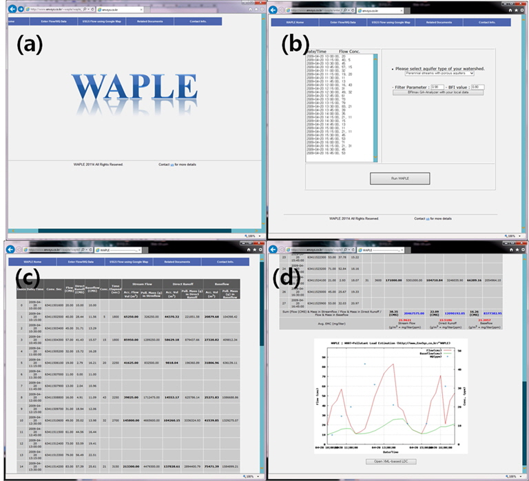 두 번째는 일일유량 및 환경부 8일 간격 실측 수질을 이용하여 하천 오염부하를 산정하는 시스템을 개발하고, 직접유출량과 기저유출량에 의한 오염부하를