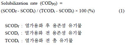 중 대부분이 휘발성 유기물로 이루어진 것으로 나타났다. 입자성 유기물은 열가수분해에 의해 액상화되어 용존성 유기물로 전환되게 된다. 이는 음식물류