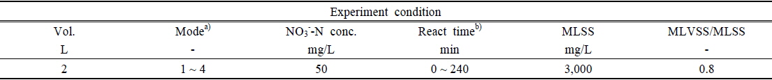 240분 후에는 4.1 mg/L까지 NO3--N가 제거되었다.