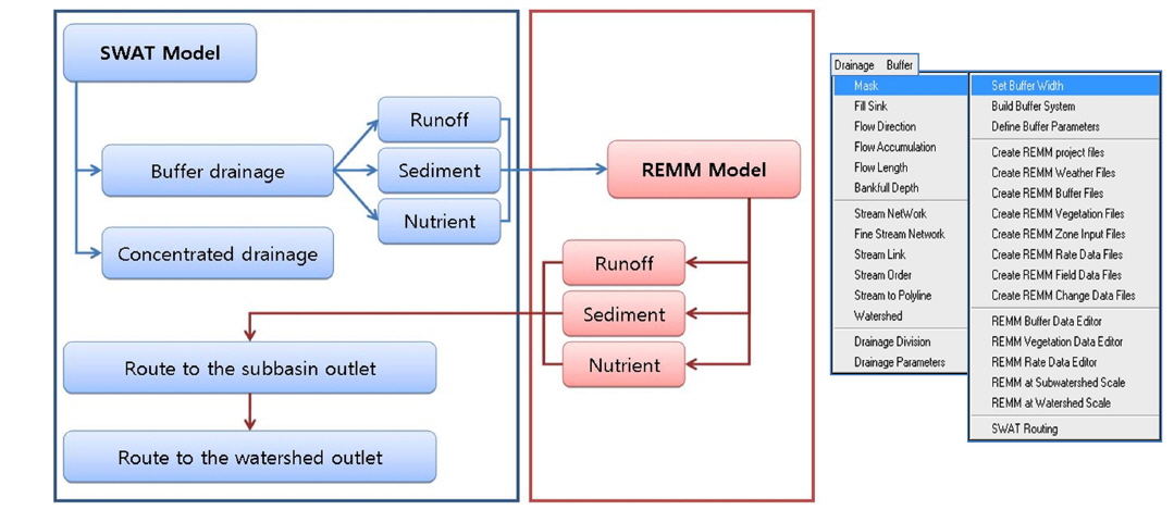 Baseflow, Non-Point Source, Pollutnat Load, Riparian Buffer, SWAT-REMM