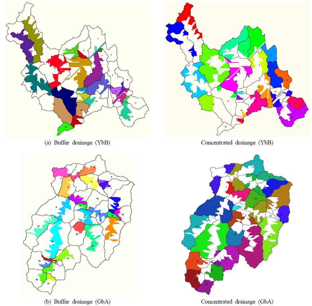 m, ์๋๋ฆฌ์ค 3 ์์ 30 m๋ก ํ์์ ๋ ๋ฐฐ์๊ตฌ์ญ(Buffer Drainage) ๋ด ๊ธฐ์ ์ ์ถ๋์ ์ํ ์ง์ฐ์ฑ ์ง์์ ์ ๊ฐํจ๊ณผ๋ฅผ ๋ถ์ํ์๋ค.