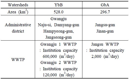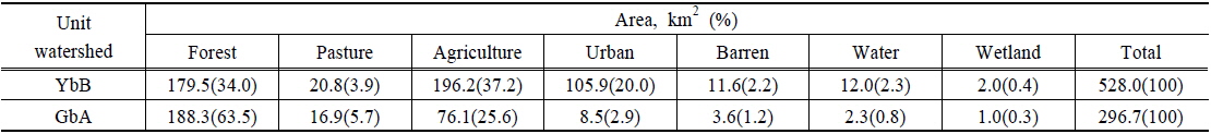 ๋ณธ ์ฐ๊ตฌ์ ๋์ ์ ์ญ์ธ YbB ์ ์ญ์ 528.0 km2์ผ๋ก ๊ด์ฃผ๊ด์ญ์๊ฐ ์ ์ญ์ 72%๋ฅผ ์ฐจ์งํ๊ณ ์๋ค. 1980๋