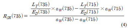 본 연구에서는 735 nm와 715 nm 파장에서의 현장 측정값을 이용해 표면반사율을 식 (4)로부터 산정하였다. 735 nm 파장에서 계산된 표면반사율을