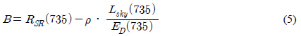 이용해 식 (5)로부터 반사광에 의한 오차를 계산하고 식 (6)을 이용해 원격반사율을 산정하였다.