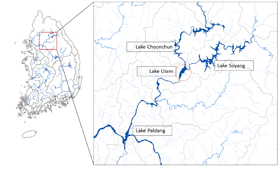 연구 대상지역은 최근 연이은 녹조 발생으로 수질관리 측면에서 주요 관심지역으로 부상되고 있는 북한강 수계 의암호로 수표면적 17 km2, 평균 너비와 길이는 각각 5 km, 8 km의 다목적댐이다. 유역면적은 7,709 km2이고 총 저수용량은 80,000,000 m3 이다.