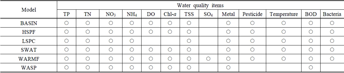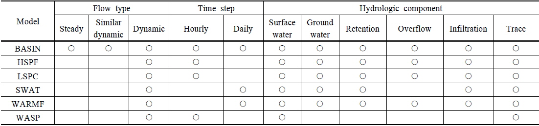 수질 성분 등을 비교하여 대상유역에 적합한 동적 모델을 선택하고, 그 적용성을 검토하고자 하였다.