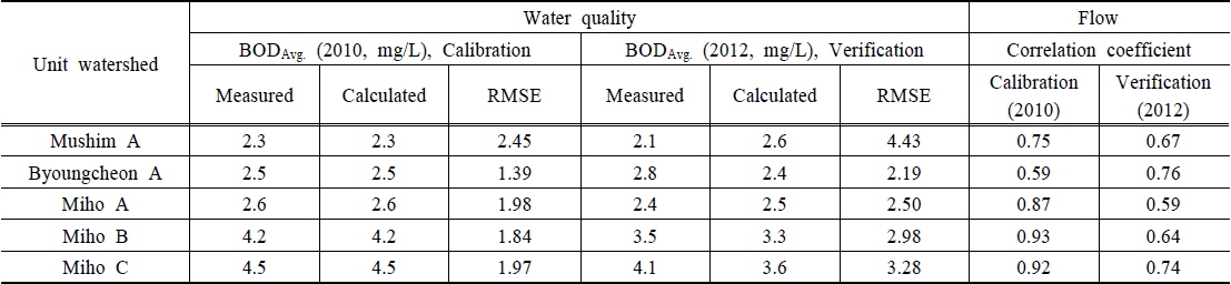 결과 해당 연도의 유량과 수질을 적절히 재현하는 것으로 판단되었다.