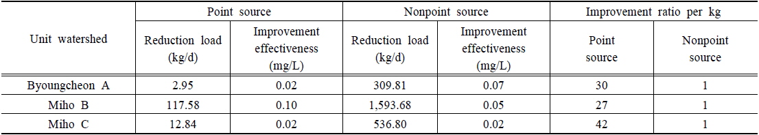 Water quality improvement effectiveness according to the reduction load of point and