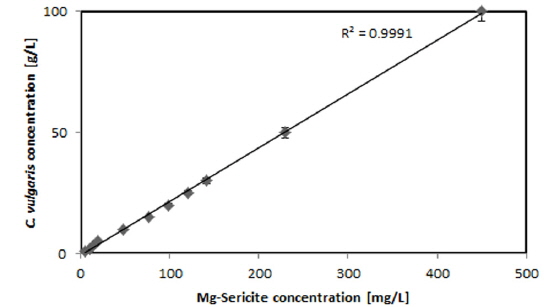 ์์ง์ ์ ์์ ์ฆ๊ฐ ์ํฌ ํ์๊ฐ ์๋ค. Mg-Sericite์ C. vulgaris๋๋์ ๋ฐ๋ฅธ ์ํ๋ฅ ์ ์๊ด๊ด๊ณ๋ 3.3์ ์คํ๊ฒฐ๊ณผ๋ฅผ ๋ํ๋ด์๋ค.