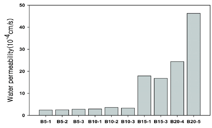 Comparison of water permeability depending on mixing ratio.